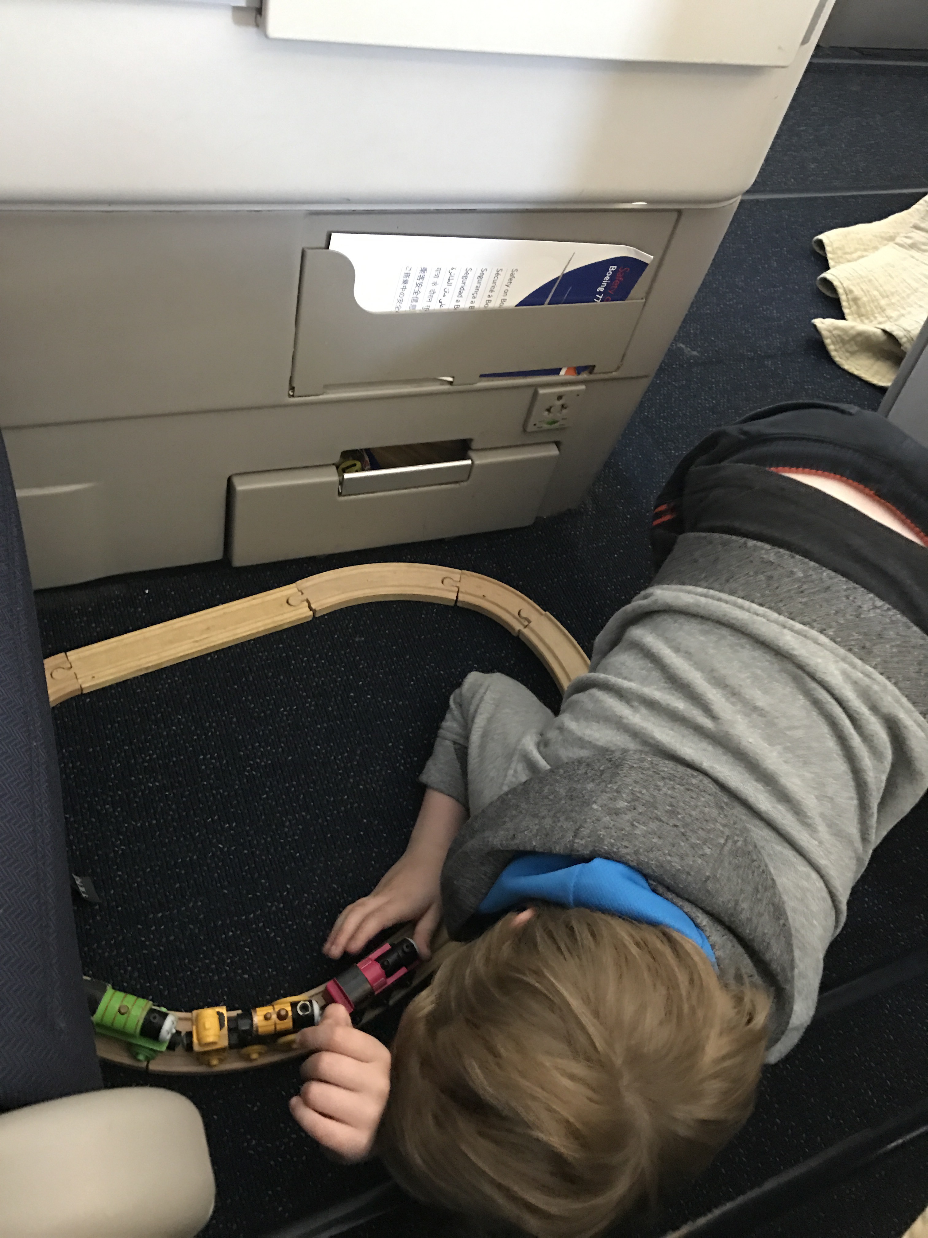 Of course the luxury of flying business class is of course the opportunity to use the flat beds and stretch out. My son however decided to utilise the extra floor space to set up a track play with his trains for 9 hours!!!