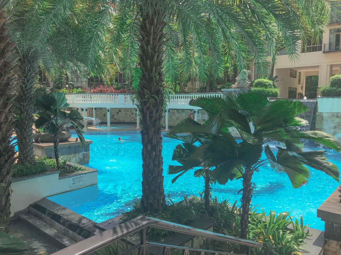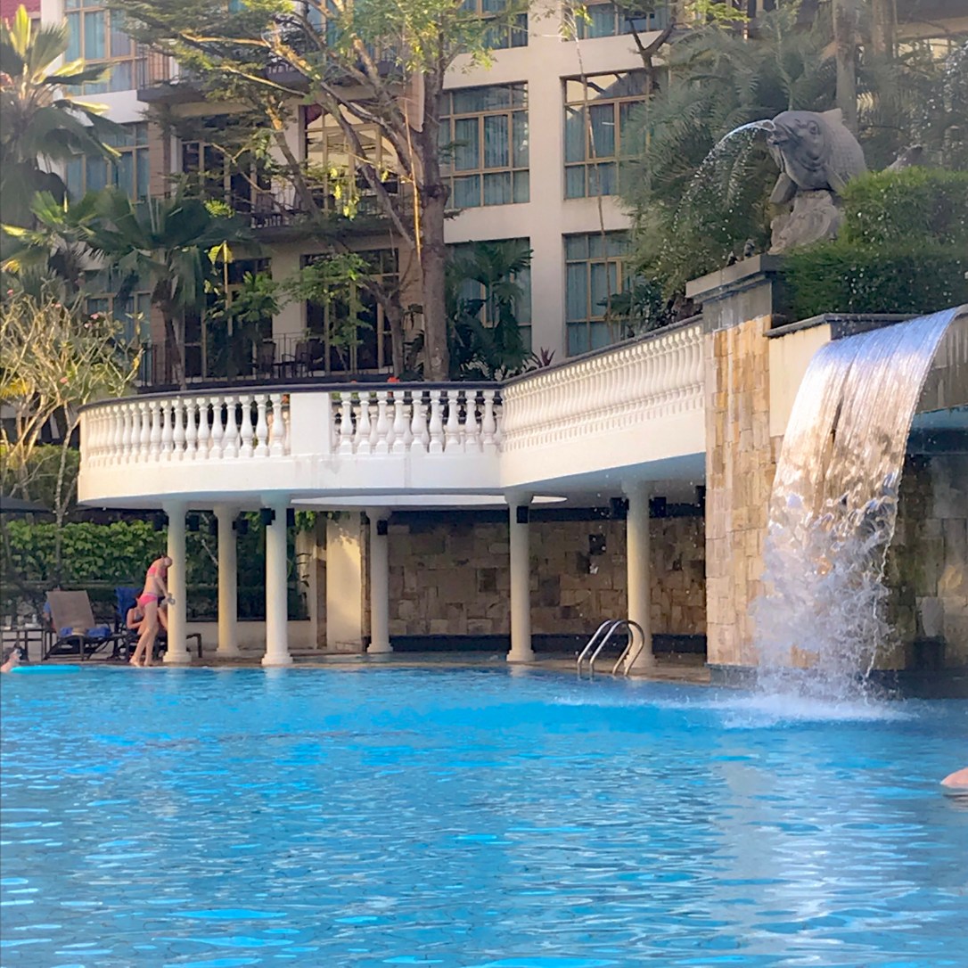 The swimming pool was enormous with two very small pools for children and a hot top area hidden in behind the waterfall.