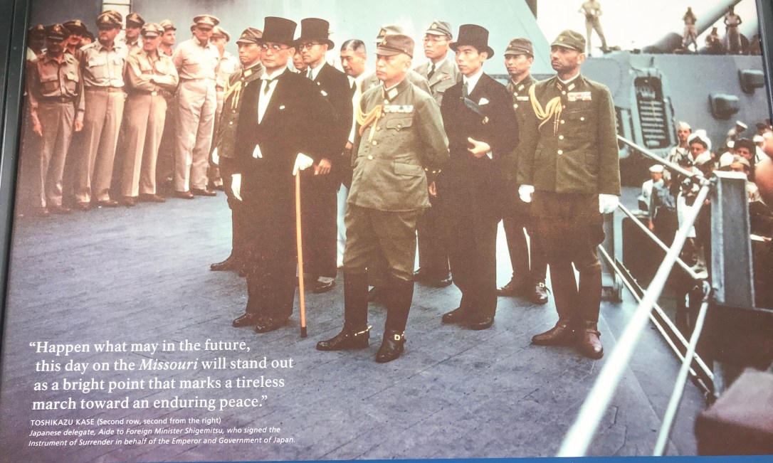 I learnt so much that day and it was quite surreal for Cameron and I to be stood on the exact spot of that battleship where the surrender ceremony took place and where the documents were signed which officially ended the second war war whilst the USS Missouri was at anchor in Tokyo Bay in 1945.