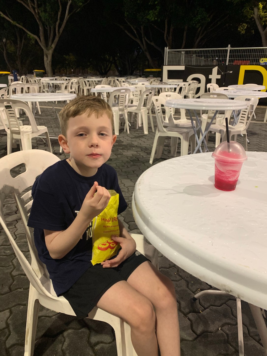 The good news was that once outside the stadium we could still hear the music loud and clear, just a few decibels lower. Cam was happy with that and sat enjoying some mini hot donuts from one of the food stalls outside whilst listening to the rest of the concert. It wasn’t quite the same but it was at least a compromise.