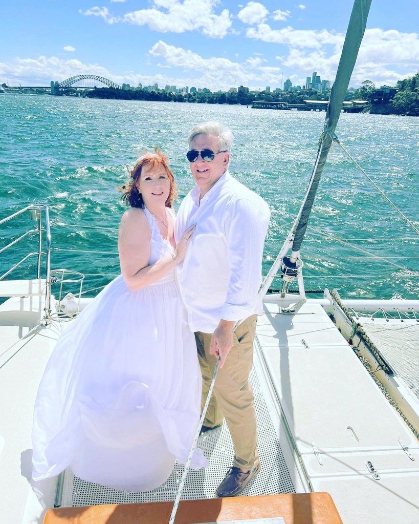 Two days later Simon and I legally married on a catamaran in Sydney harbour. A second ceremony conducted by a celebrant Roxy Hotten whom I had trained and who had flown in from Brisbane to do the honours. It was a much smaller ceremony with just 5 other guests in attendance but the most perfect and intimate setting. We re-affirmed the vows which we had said two months earlier and Simon gave me the most stunning eternity ring which had the diamonds reset from my late Grandmothers eternity ring.